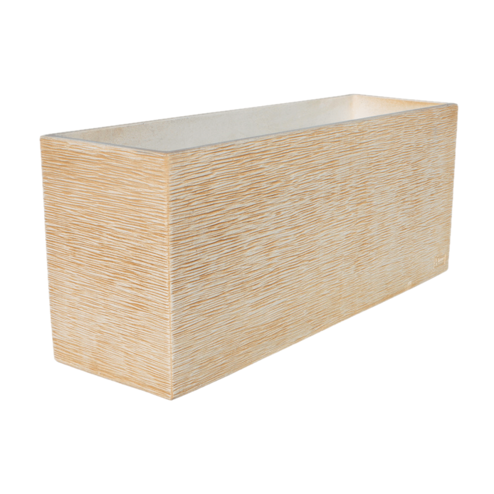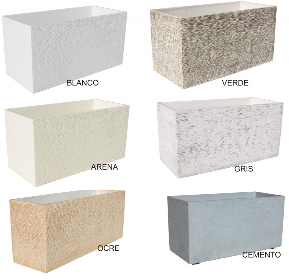 Jardiniere Alicante rectangulaire de 90cm en béton. Fabriqué en pierre reconstituée avec des matériaux naturels, spécialement conçu pour l’extérieur, solide, préparé pour résister aux intempéries telles que les fortes rafales de vent, la pluie, les rayons UV, etc.