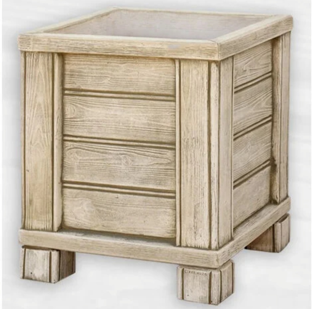 Pot Carré Lamas de 40cm en béton. Fabriqué en pierre reconstituée avec des matériaux naturels, spécialement conçu pour l’extérieur, solide, préparé pour résister aux intempéries telles que les fortes rafales de vent, la pluie, les rayons UV, etc.