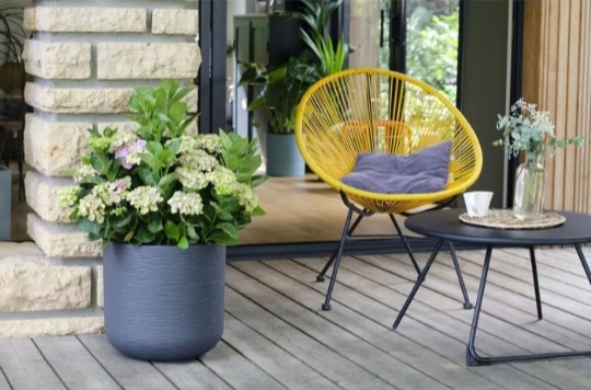 Les pots en polystone sont composes de résine en polyester, d’une charge minérale et de fibre de verre qui renforce la structure.